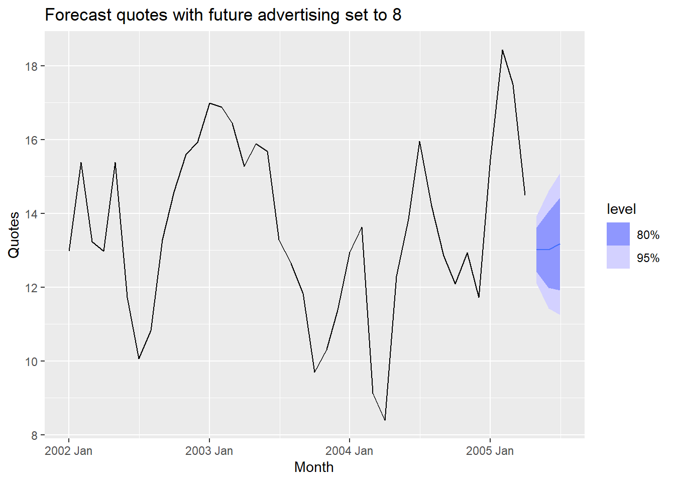 Now let’s forecast the quotes for 3 months, assuming the TVadverts is 8: